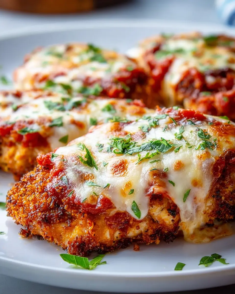 Elevate your dining experience by beautifully plating your Air Fryer Chicken Parmesan. Place the chicken on a bed of marinara sauce, topped with a sprinkle of fresh parsley. Arrange the sides artfully around the chicken, contrasting colors for an eye-catching presentation. Consider using a large white plate to make the vibrant colors pop. Garnishing with thin lemon slices or extra cheese can add a touch of elegance while enhancing flavors.