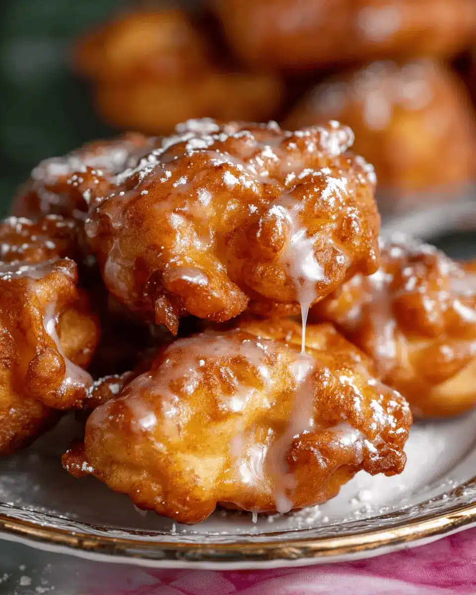 Once your fritters have cooled slightly, it’s time to make them shine! You can either dip the fritters into the glaze, letting any excess drip off, or drizzle the glaze over the top using a spoon. Allow the glaze to set for about 10 minutes before serving, and get ready for the compliments to roll in.