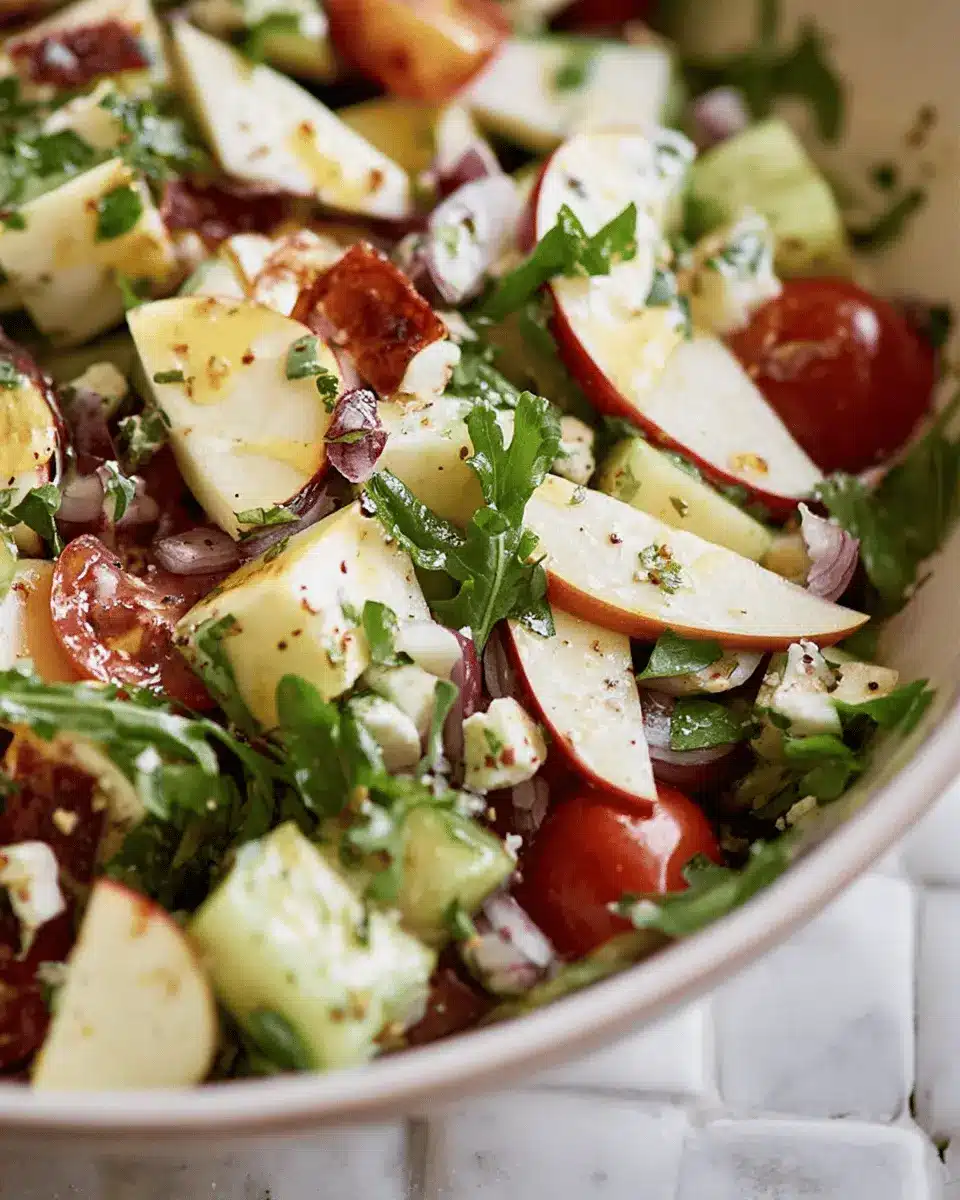 There you have it: a vibrant apple salad that’s not just a feast for the eyes but also a delightful explosion of flavors in every bite! Enjoy making this delicious dish and impressing your friends at your next gathering.