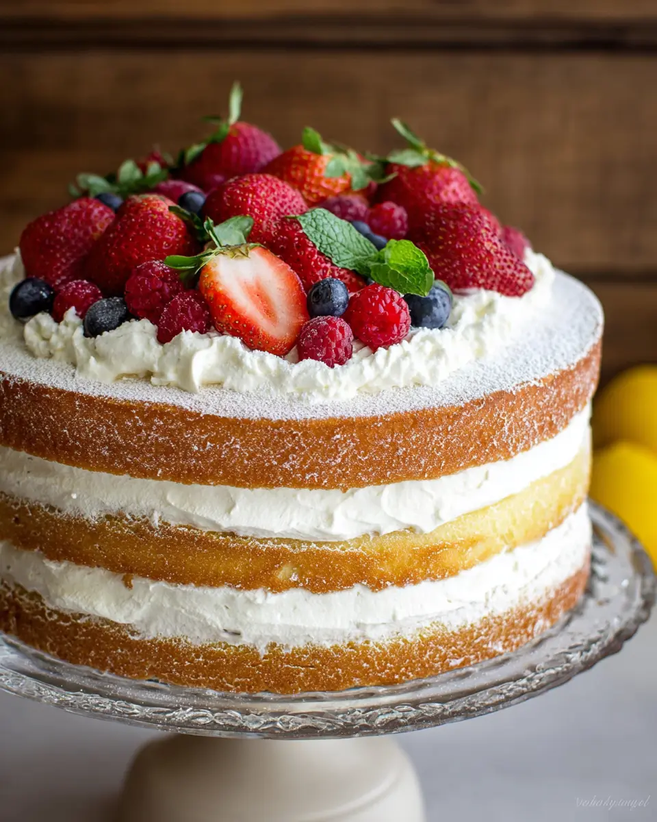 Berry Vanilla Naked Cake with Lemon Whipped Cream