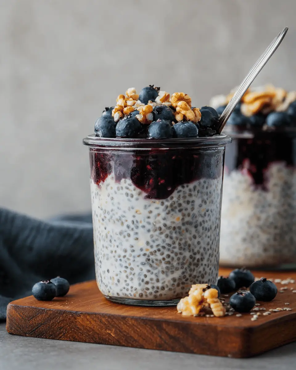 Blueberry chia overnight oats are not just a delicious breakfast option; they pack a nutritional punch! With high fiber, healthy fats, and antioxidants from blueberries, they boost your energy and keep you satisfied throughout the morning.