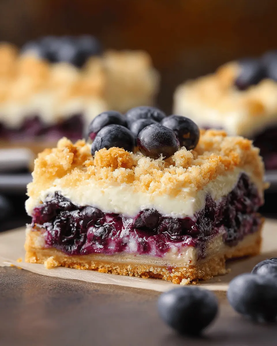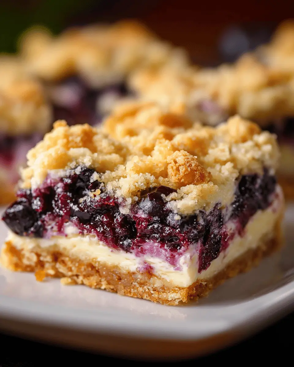 In summary, blueberry cream cheese crumb bars are a delightful treat that combines the tartness of fresh blueberries with creamy cheesecake and a buttery crumble. They’re perfect for any occasion, from sweet snacks to dessert at gatherings. Enjoy every decadent bite, and don’t forget to share with friends!