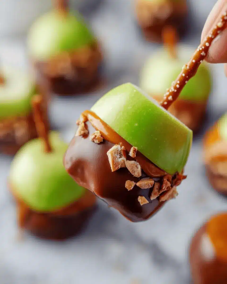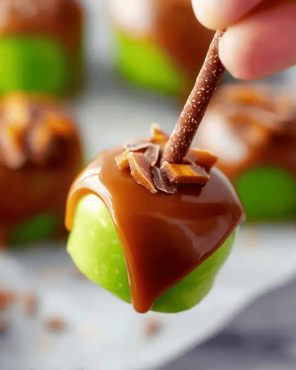 Elevate your caramel apple bites game by drizzling them with chocolate! After the bites have set, melt some dark or milk chocolate and use a fork to swirl it over each bite for a decadent touch. This not only enhances presentation but also satisfies any chocolate cravings that might arise. For an extra pop, sprinkle sea salt or colorful sprinkles on top before the chocolate hardens.