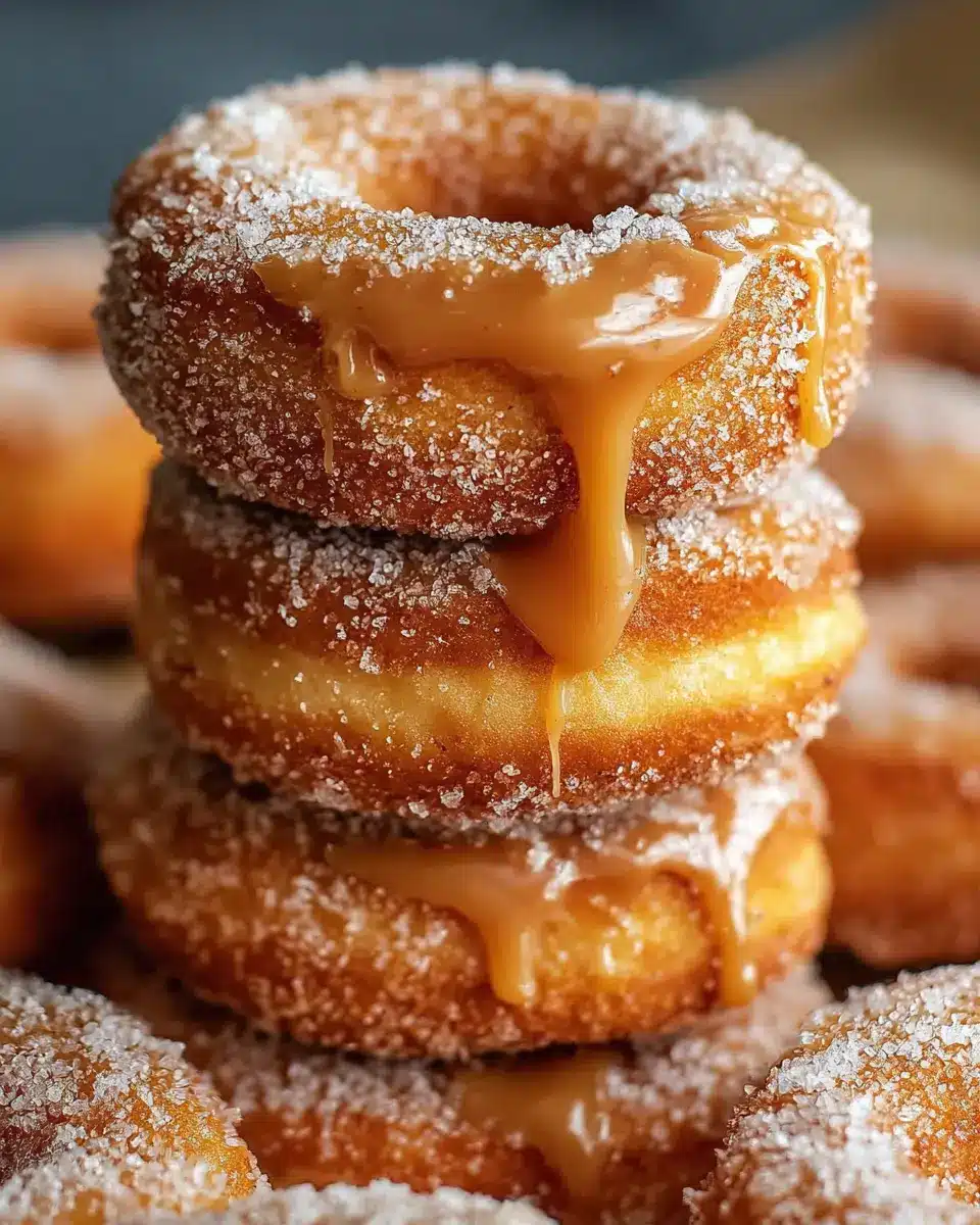 Once cooled, take a piping bag filled with caramel sauce and carefully inject it into the sides of each donut. This will create a delightful surprise in every bite!