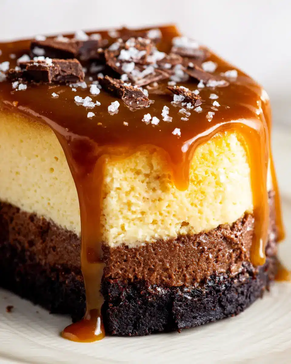 To enhance your dessert, serve the Caramel Brownie Cheesecake with complementary sides. A scoop of vanilla bean ice cream or a dollop of whipped cream provides a creamy texture that pairs beautifully with the dense cheesecake. For a playful twist, consider serving it alongside sliced fruits or even some crunchy caramel popcorn for a delightful contrast in textures. Warm beverages like a rich hot chocolate or a spiced chai tea can also round out the experience, making it a satisfying treat any time of day.