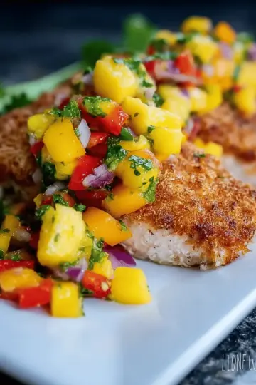 Coconut Crusted Salmon with Mango Pineapple Salsa