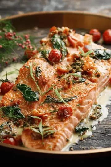 Tuscan Salmon with Parmesan Cream Sauce