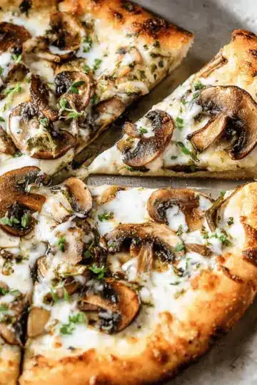 Mushroom Pizza With White Sauce and Herbs