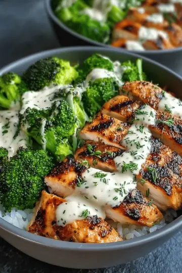 Grilled Chicken Broccoli Bowls: Easy Creamy Garlic Sauce Recipe