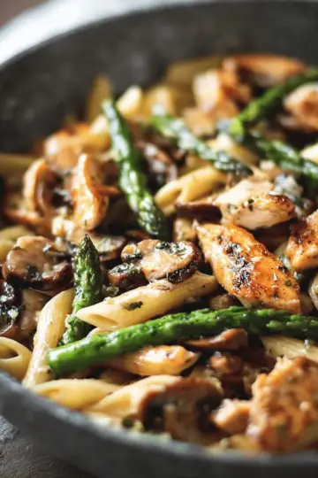 Garlic Chicken Mushroom and Asparagus Penne: Easy Family Recipe