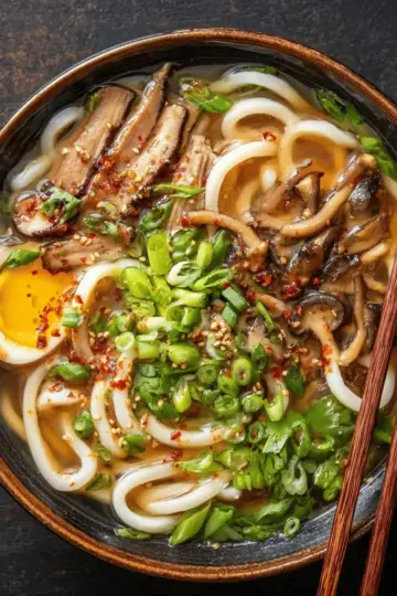 Miso Udon Noodle Soup with Teriyaki Mushrooms: A Cozy Delight