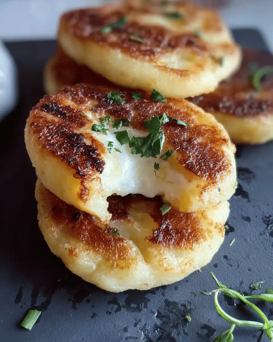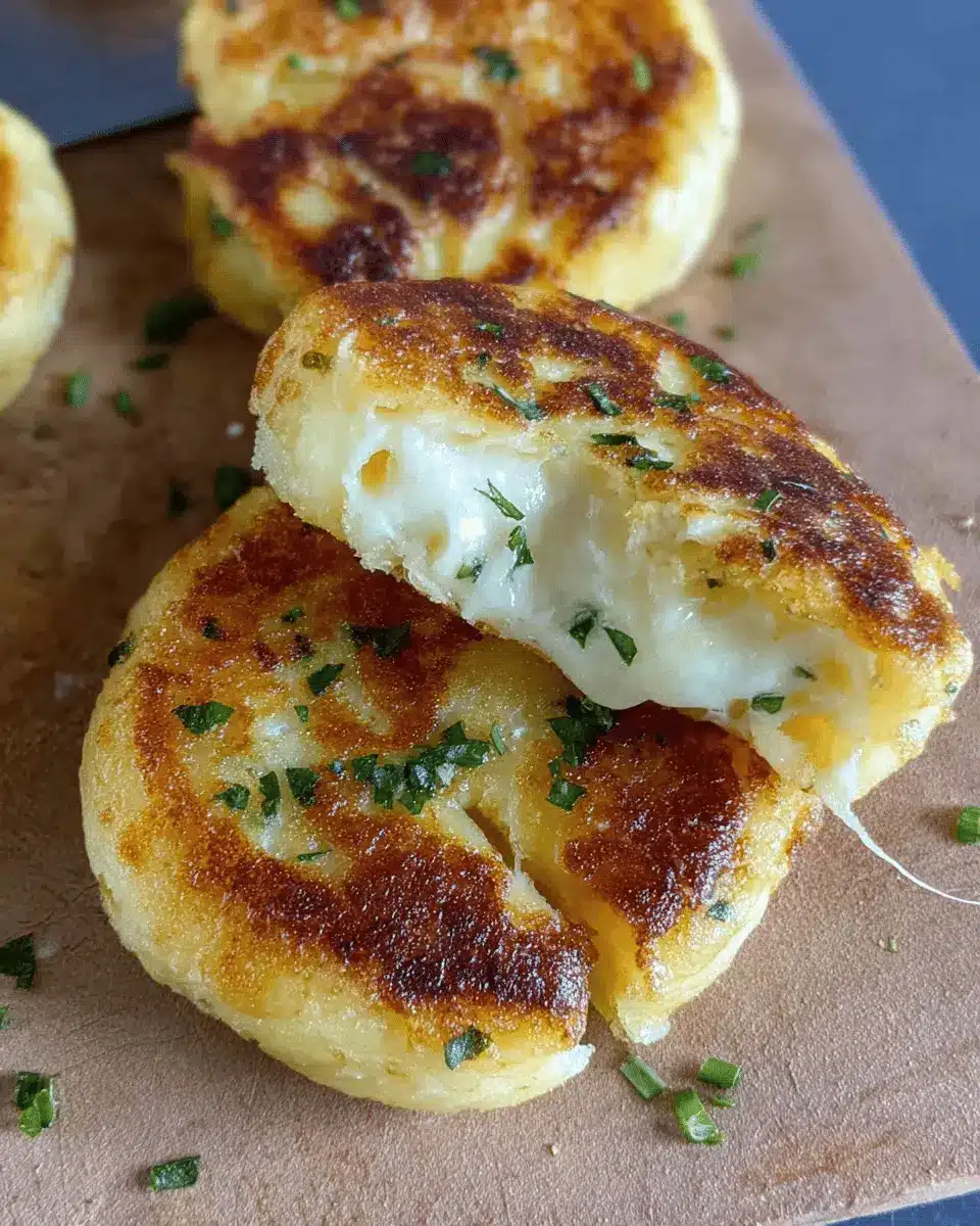 When handling the dough, keep your hands lightly floured to prevent sticking. Gently shape the dough into discs around the cheese, ensuring there are no cracks or openings; this will keep that cheesy center intact during cooking. For an even cook, make sure your cakes are uniform in size. Lastly, if you have leftovers, these cakes freeze beautifully for a quick meal later!