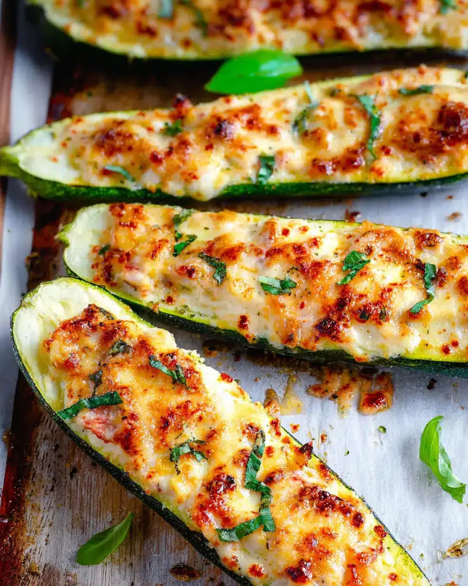 Why are cheese stuffed zucchini boats a game changer for dinner? For starters, zucchini is low in calories and fits perfectly into various dietary preferences. With a savory filling of ricotta, parmesan, and mozzarella, alongside the sweetness of roasted red peppers, you get a medley of flavors in every bite. Additionally, they’re customizable! Want to throw in some turkey bacon or chicken ham? Go for it! Looking for a vegan alternative? Use cashew cheese or a mix of beans instead.