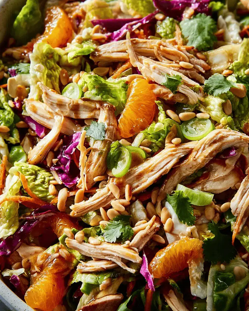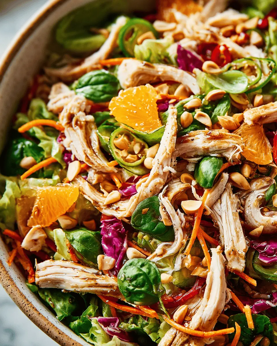If you enjoy a little heat, try adding Sriracha to your Chinese Chicken Salad dressing. Start with a tablespoon and adjust to taste for that perfect kick! You can also toss in some sliced jalapeños or red chili flakes for an extra layer of spice. Pairing spicy elements with the sweet mandarin oranges adds a delightful contrast that will keep your taste buds dancing.