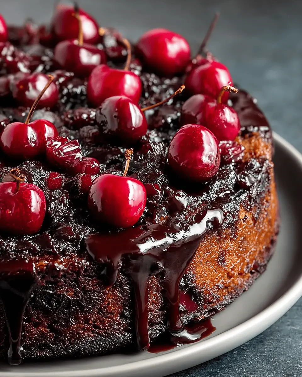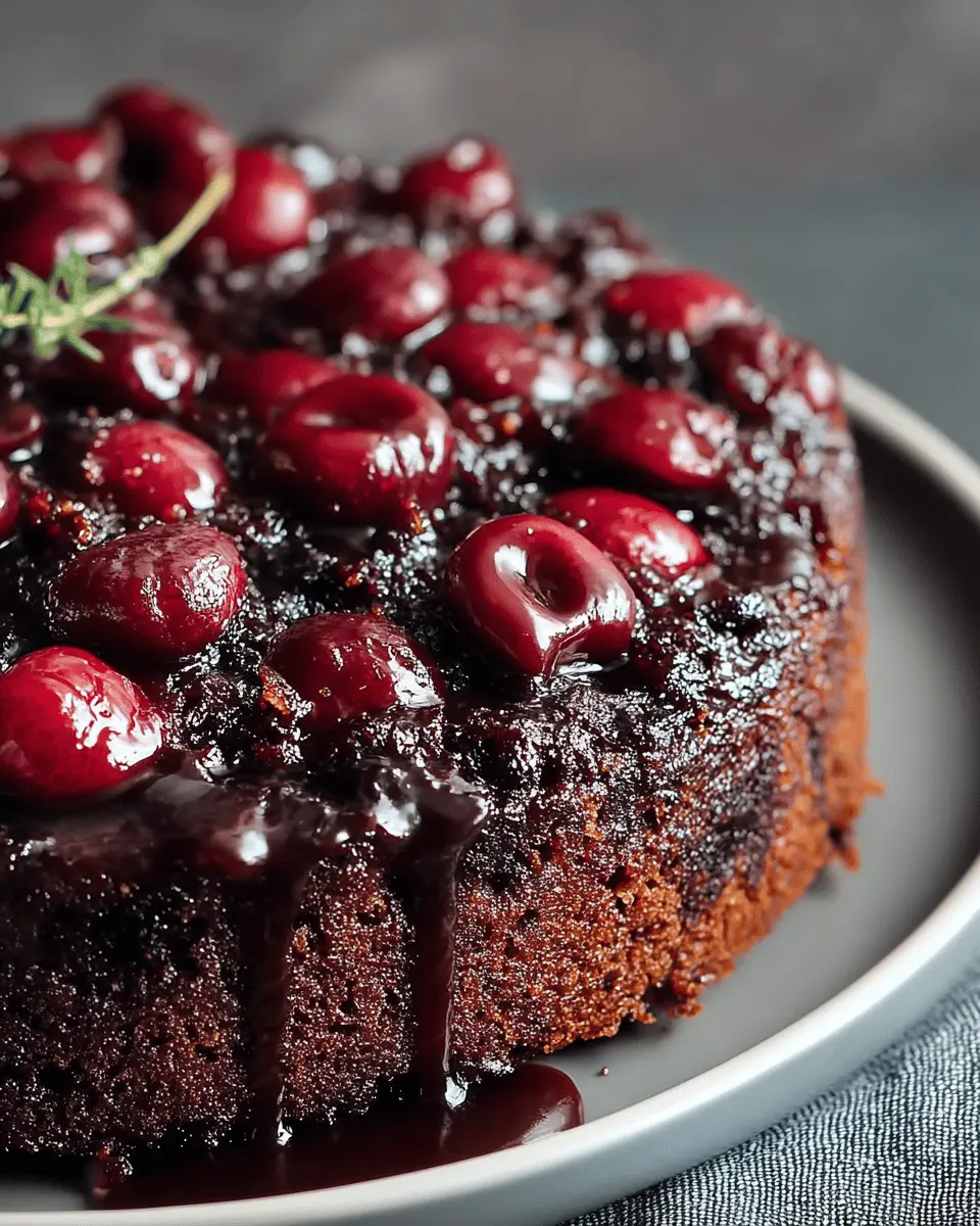 To enhance your Chocolate Cherry Upside Down Cake, consider pairing it with a fresh cup of coffee or a creamy hot chocolate. The rich espresso notes or the sweetness of chocolate will beautifully complement the tart cherry topping. Alternatively, try it with a fizzy sparkling water infused with citrus; the refreshing bubbles will cleanse your palate between bites. For a fruitier option, a chilled cherry or berry lemonade can add a delightful zest that elevates the entire dessert experience.