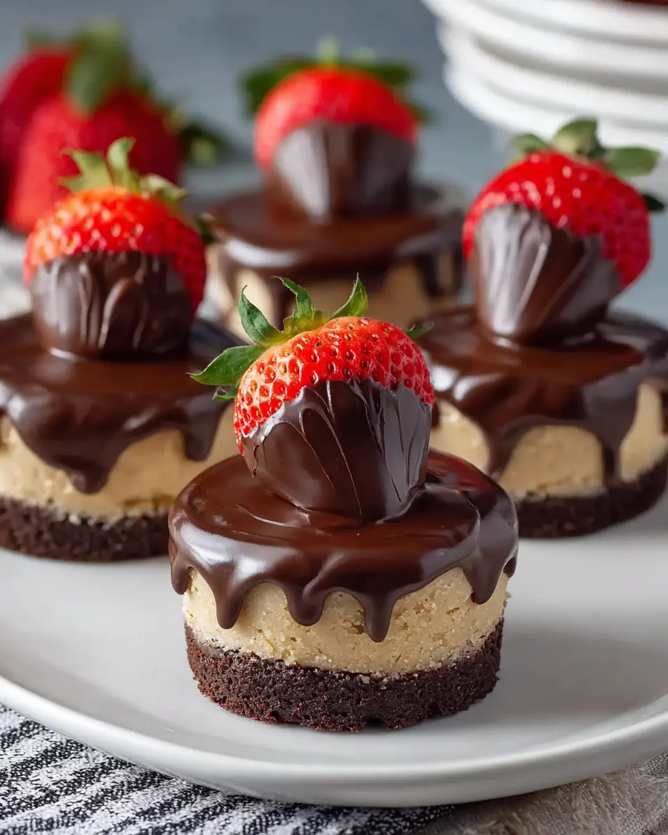 Step-by-Step Preparation of Chocolate Covered Strawberry Mini Cheesecakes