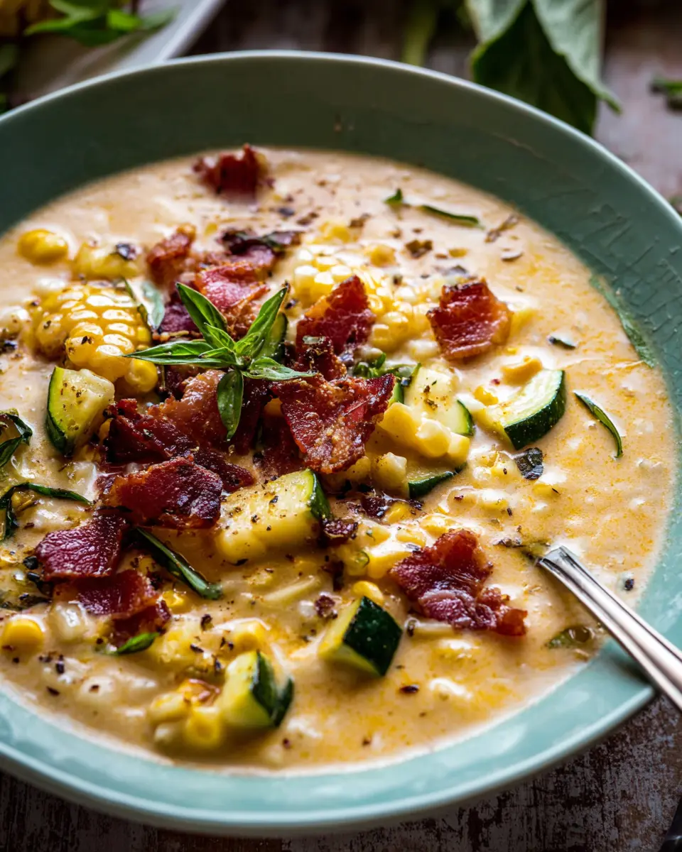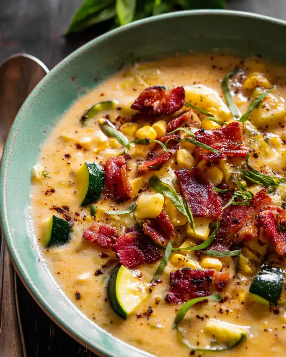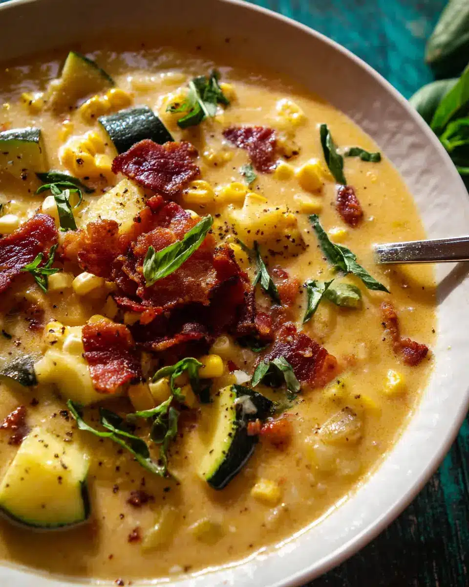 Creamy Corn, Zucchini, and Bacon Chowder