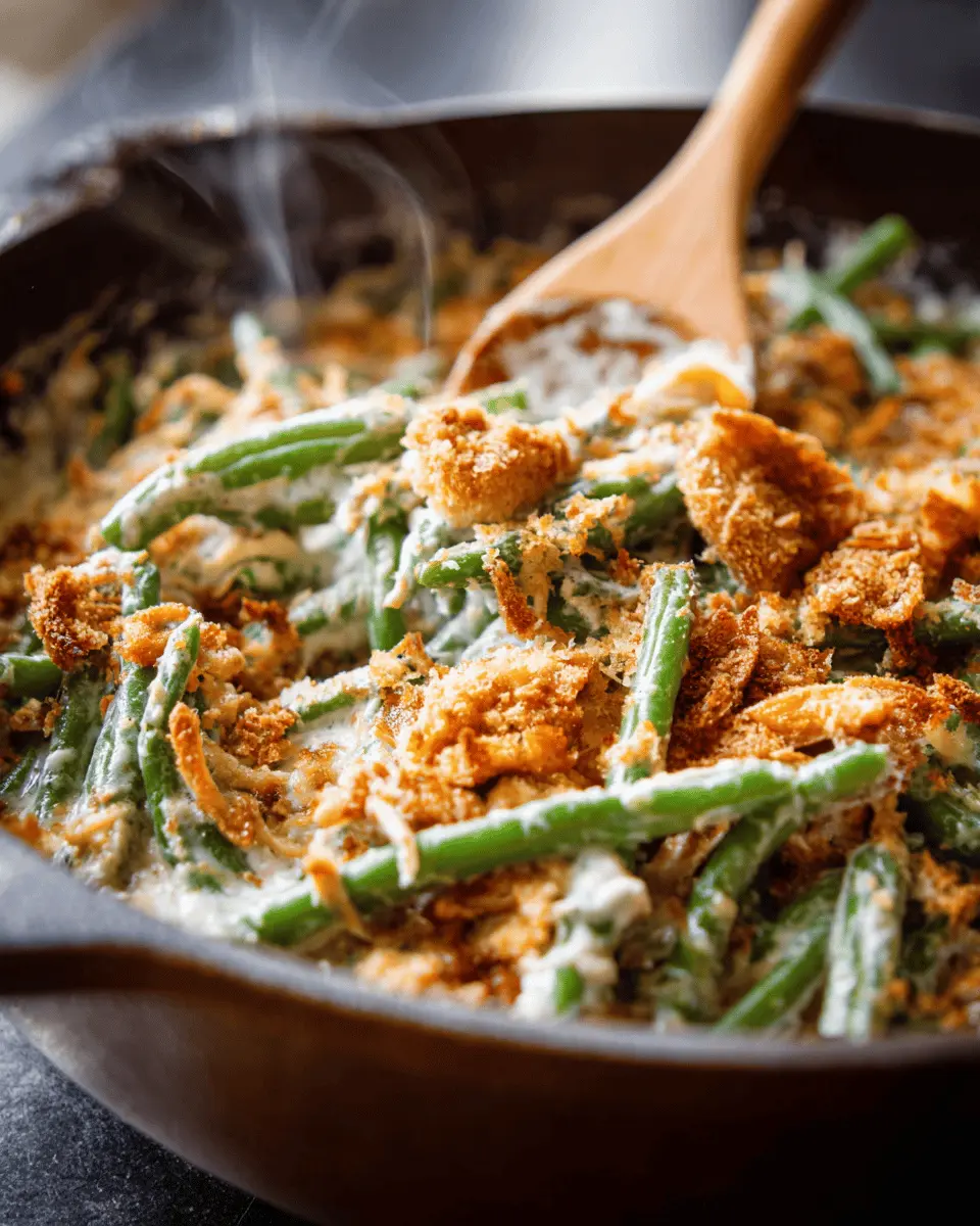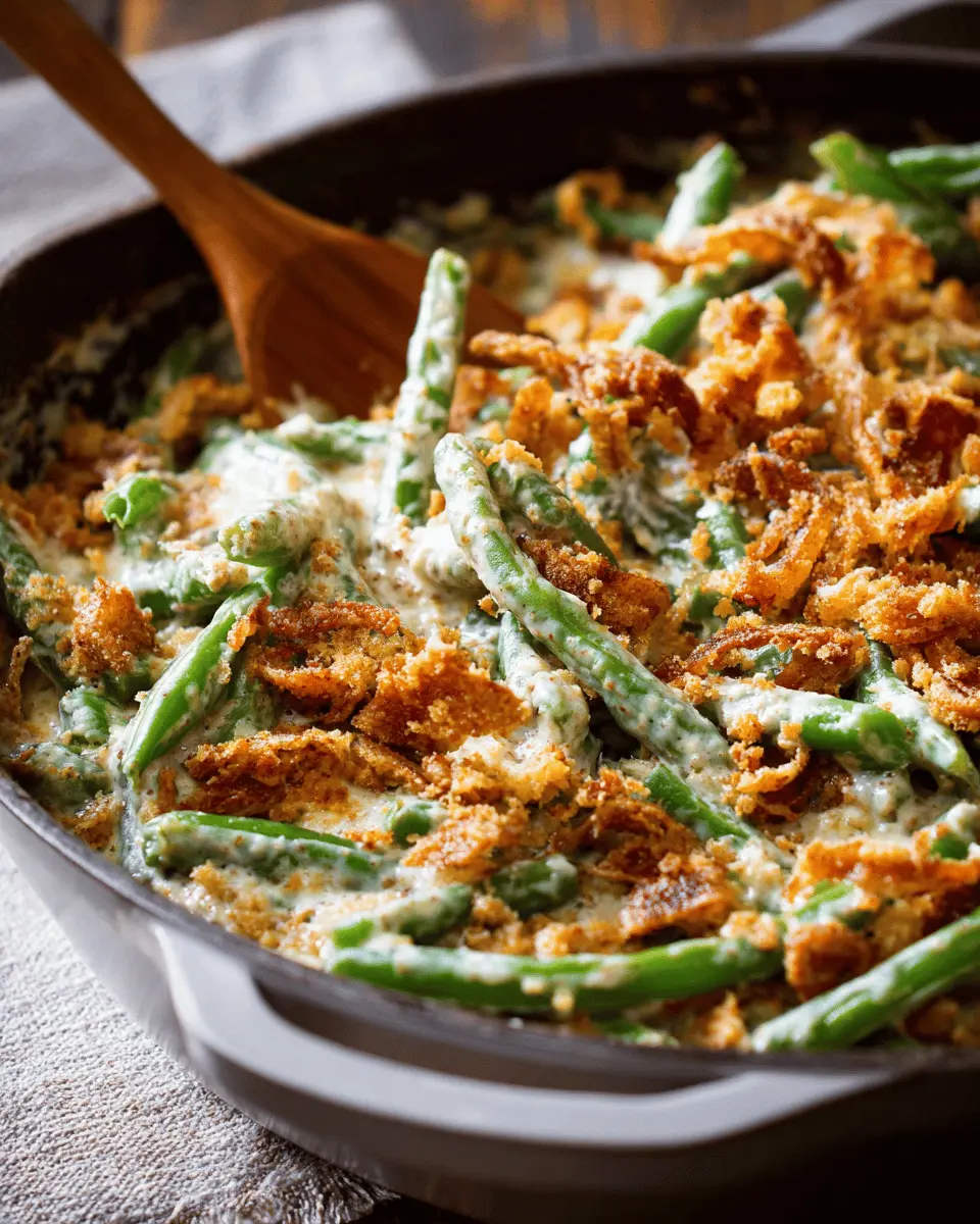 For those embracing a plant-based lifestyle, you can create a delicious vegan version of the creamy green bean casserole. Substitute the half-and-half with a rich coconut cream or a cashew cream for creaminess. Use vegetable broth instead of chicken broth, and skip the egg in the onion topping—try a flax egg instead. This way, you can enjoy all the classic flavors of this dish while keeping it completely vegan!