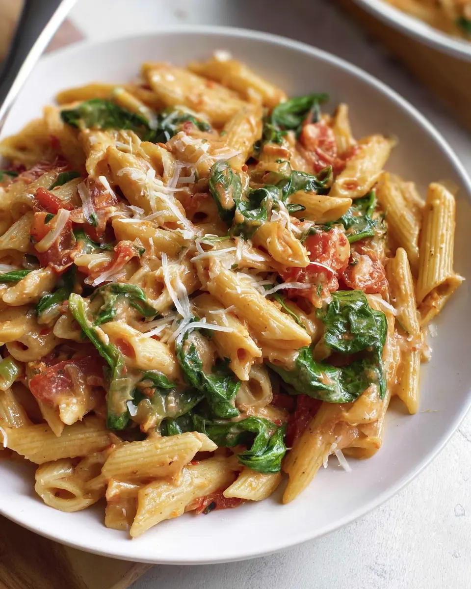 Your creamy tomato and spinach pasta is now ready to impress anyone at your table—happy cooking!