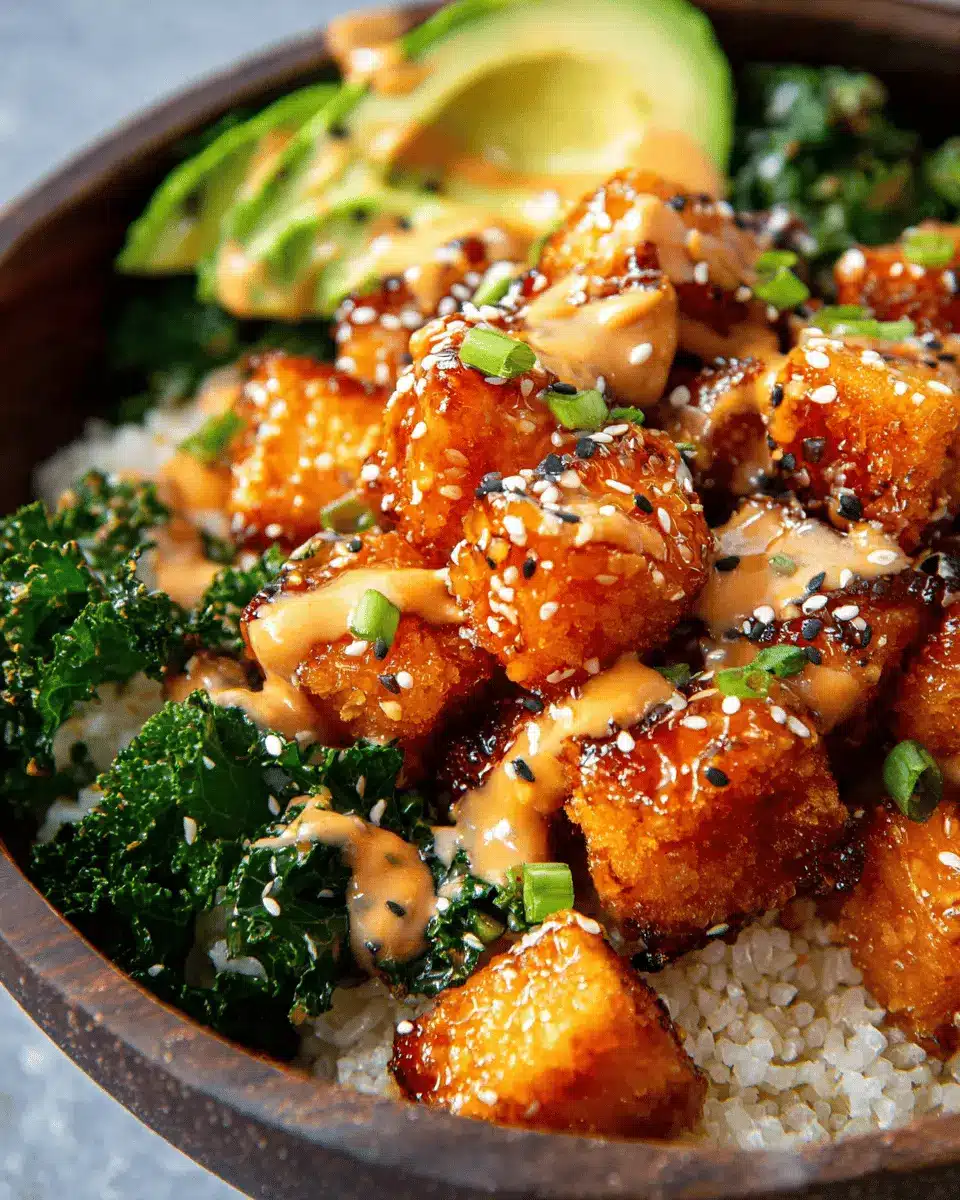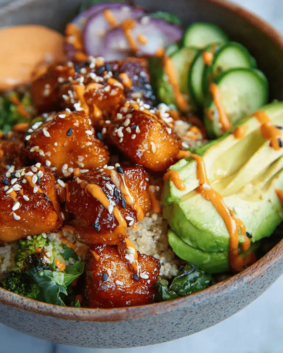 Don’t worry, veggie lovers! You can enjoy delightful bowls too. Replace the salmon with crispy tofu or chickpeas, marinated in the same bang bang sauce for that signature flavor. Add roasted or sautéed vegetables like bell peppers, zucchini, or snap peas to create a diverse, colorful bowl. Top it off with sesame seeds and green onions to mimic the Crispy Bang Bang Salmon Bites Bowls while delivering a satisfying and wholesome meal!