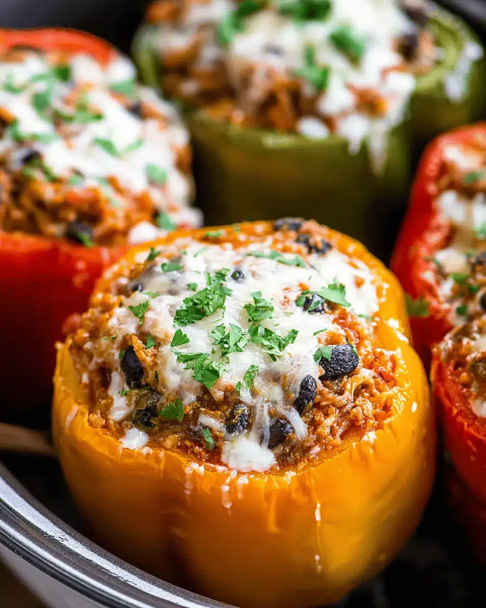 Feel free to swap the ground chicken for turkey or lean ground beef, depending on your taste preferences. If you’re not keen on quinoa, using cooked brown rice or even cauliflower rice as an alternative works beautifully. For a dairy-free option, consider omitting the cheese or using a vegan alternative. Remember, customizing these flavors is what makes your crockpot stuffed peppers uniquely yours!