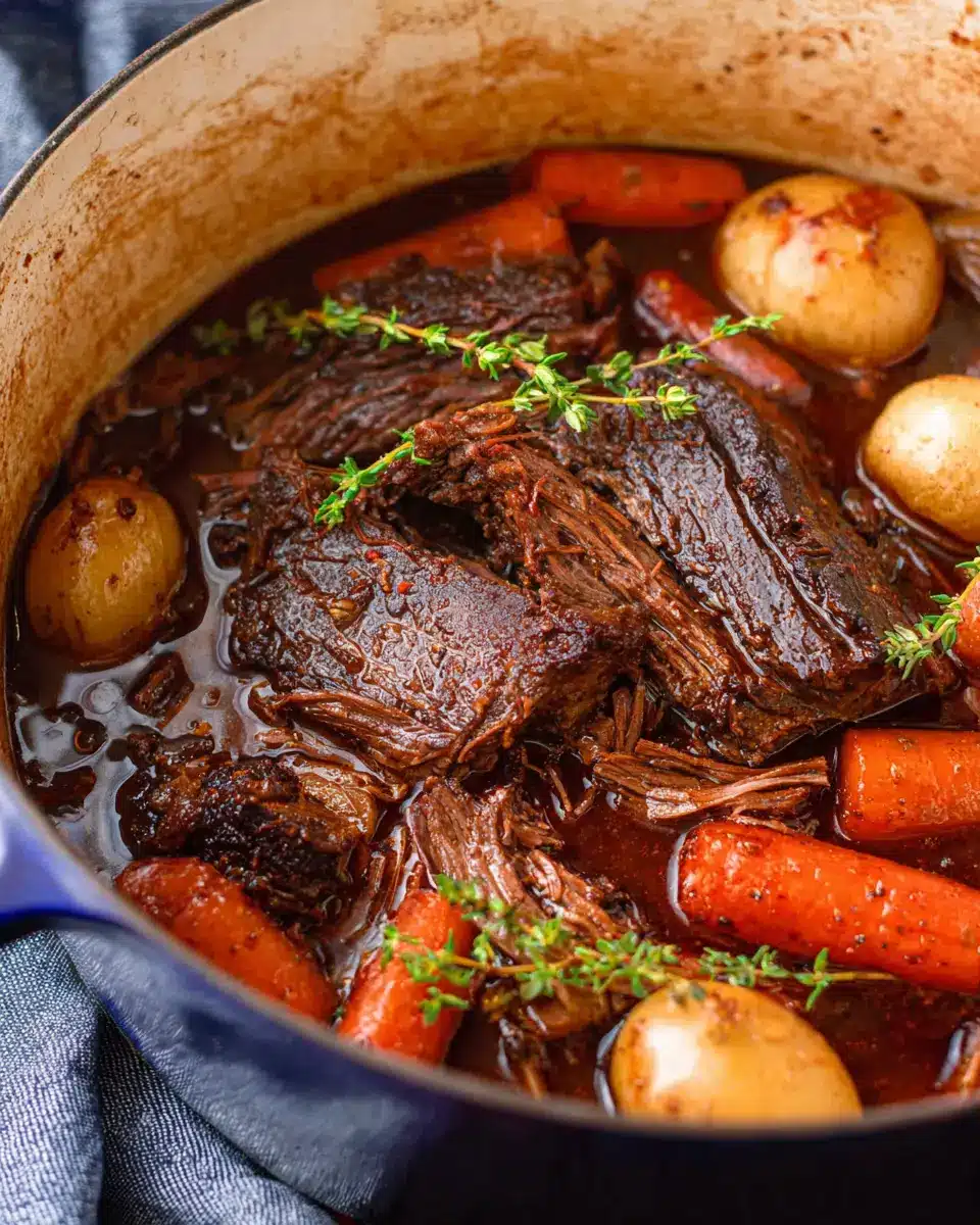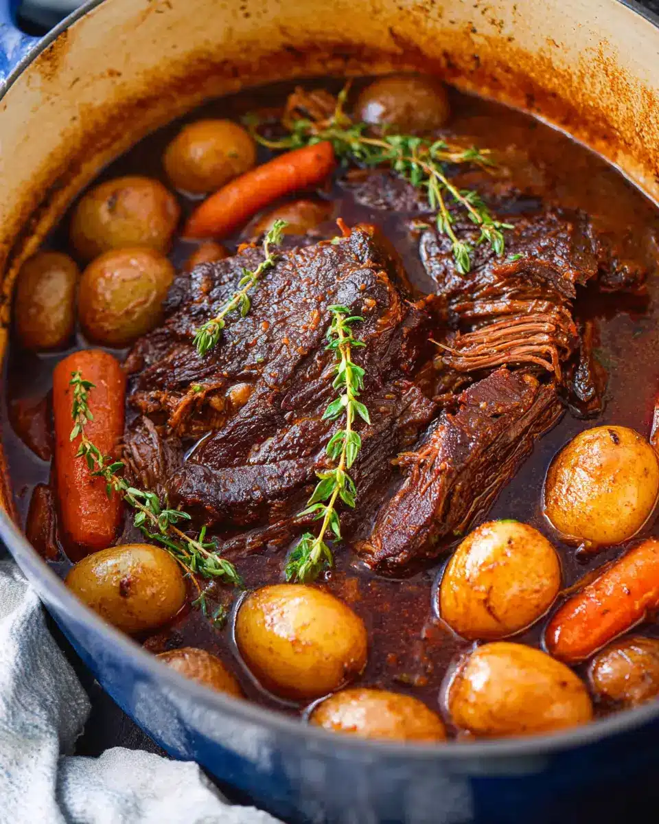 A Dutch oven is a remarkable piece of kitchen ware, known for its ability to evenly distribute heat and retain moisture. This means your pot roast will turn out tender and juicy every time. Perhaps you’ve noticed that traditional pot roasting can become dry if done incorrectly; however, with the method we’ll be covering, you’ll achieve fork-tender beef that melts in your mouth.