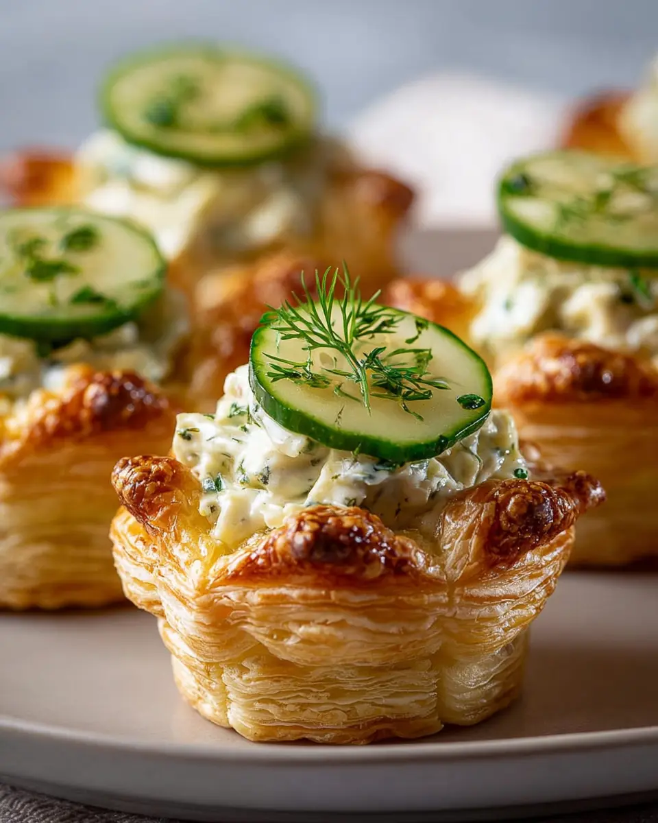 As soon as you pull those puff pastry cups out of the oven, let them cool for a minute, then serve them warm. This appetizer is best enjoyed fresh, when the flavors are vibrant, and the pastry is still slightly flaky.