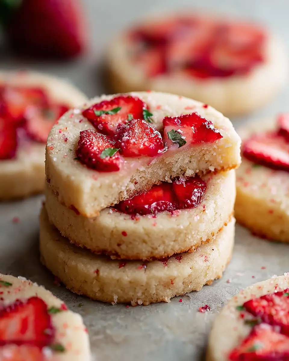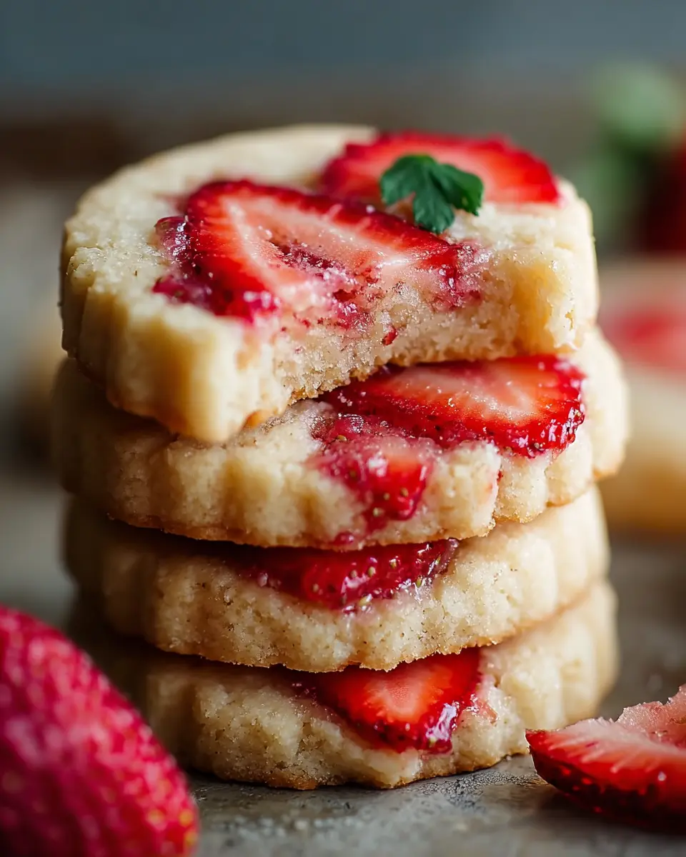 In conclusion, these easy strawberry shortbread cookies delight your taste buds with their buttery texture and fruity flavor. Perfect for any occasion, they’re simple to make, requiring just a few ingredients. Share them with friends, or savor them all to yourself! Either way, enjoy every bite!