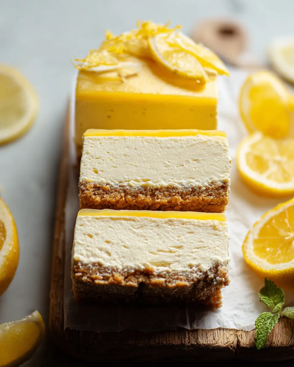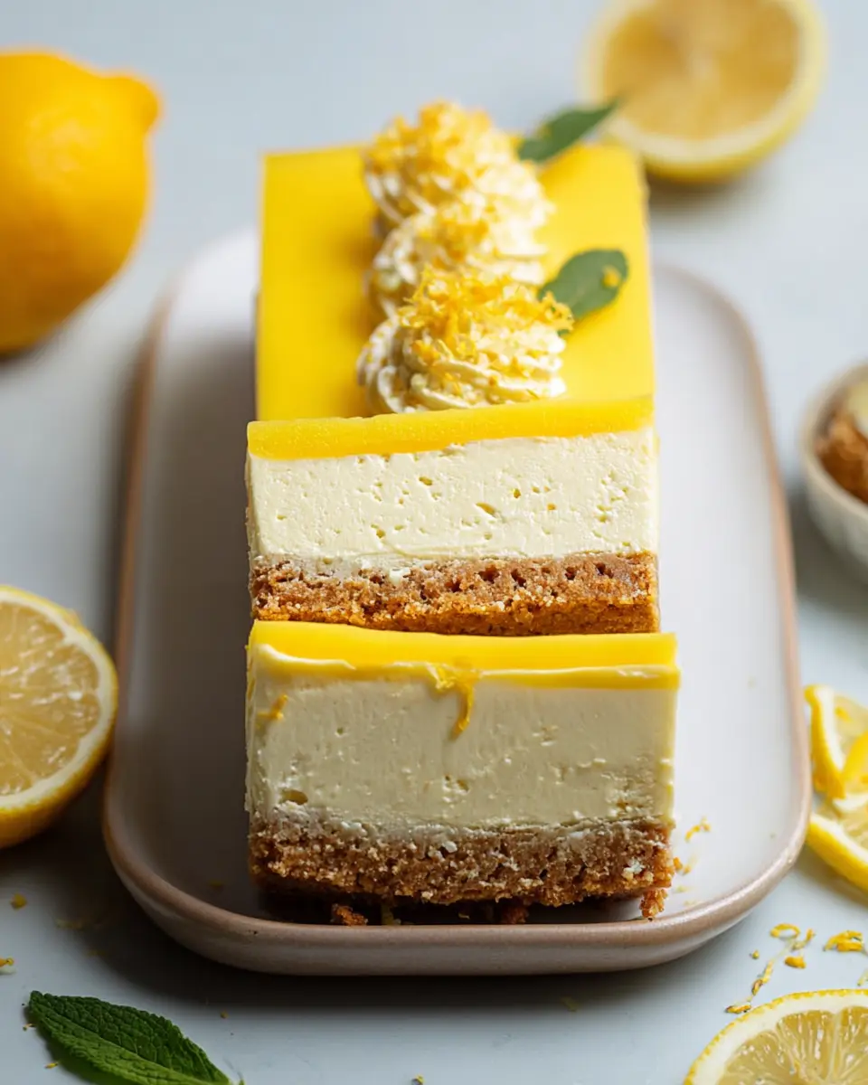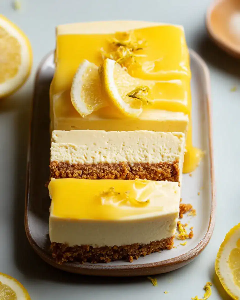 Once your filling is set, it’s time for the final assembly. Take half a cup of the remaining lemon curd and gently warm it in a saucepan until it becomes spreadable. Pour this on top of your cheesecake and smooth it out with an offset spatula or the back of a spoon. For best results, let it chill in the fridge for another hour or freeze it for 30 minutes to make cutting easier.