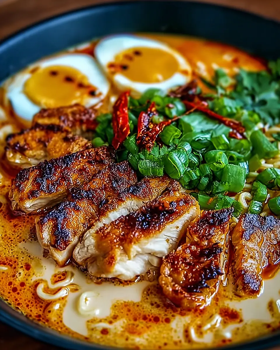 If you're looking for a protein alternative in this Fiery Chicken Ramen, consider using tofu, shrimp, or even beef. For a vegetarian option, replace the chicken with grilled mushrooms or tempeh. Each option brings its own unique flavor profile, so feel free to experiment and find what you love best!