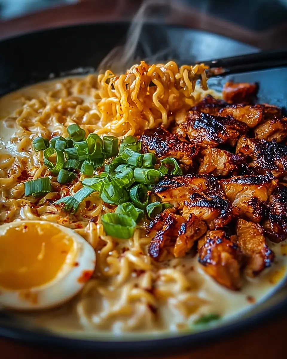 In summary, Fiery Chicken Ramen is not just a dish; it’s an experience bursting with flavors and comfort. With its simple preparation and customizable spice level, you can easily make this creamy delight your own. Enjoy a warm bowl of happiness that satisfies every craving!