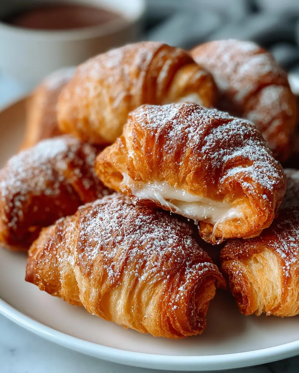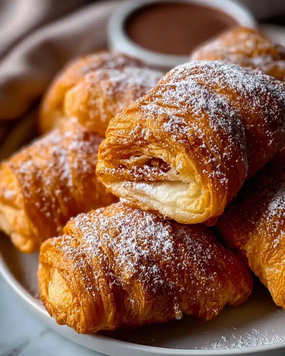 Once fried, remove the croissant halves using a slotted spoon and let them drain on paper towels. This step is crucial to avoid sogginess. While they’re still warm, dust your fried croissant beignets with powdered sugar or vanilla sugar for that perfect sweet finish. Serve these warm and watch as everyone falls in love with their crispy exterior and soft, decadent center.