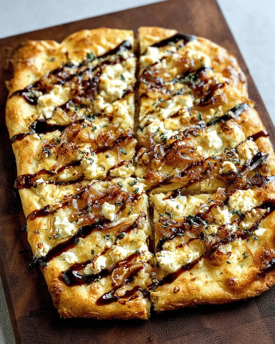 In conclusion, this Goat Cheese Pizza with Caramelized Onions recipe is a delightful choice for your next homemade pizza night. The creamy goat cheese, paired with sweet, caramelized onions, creates a balanced and flavorful topping that will impress your friends and elevate your dinner table. Enjoy every bite!