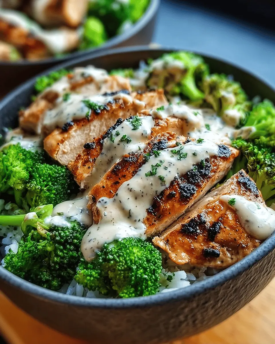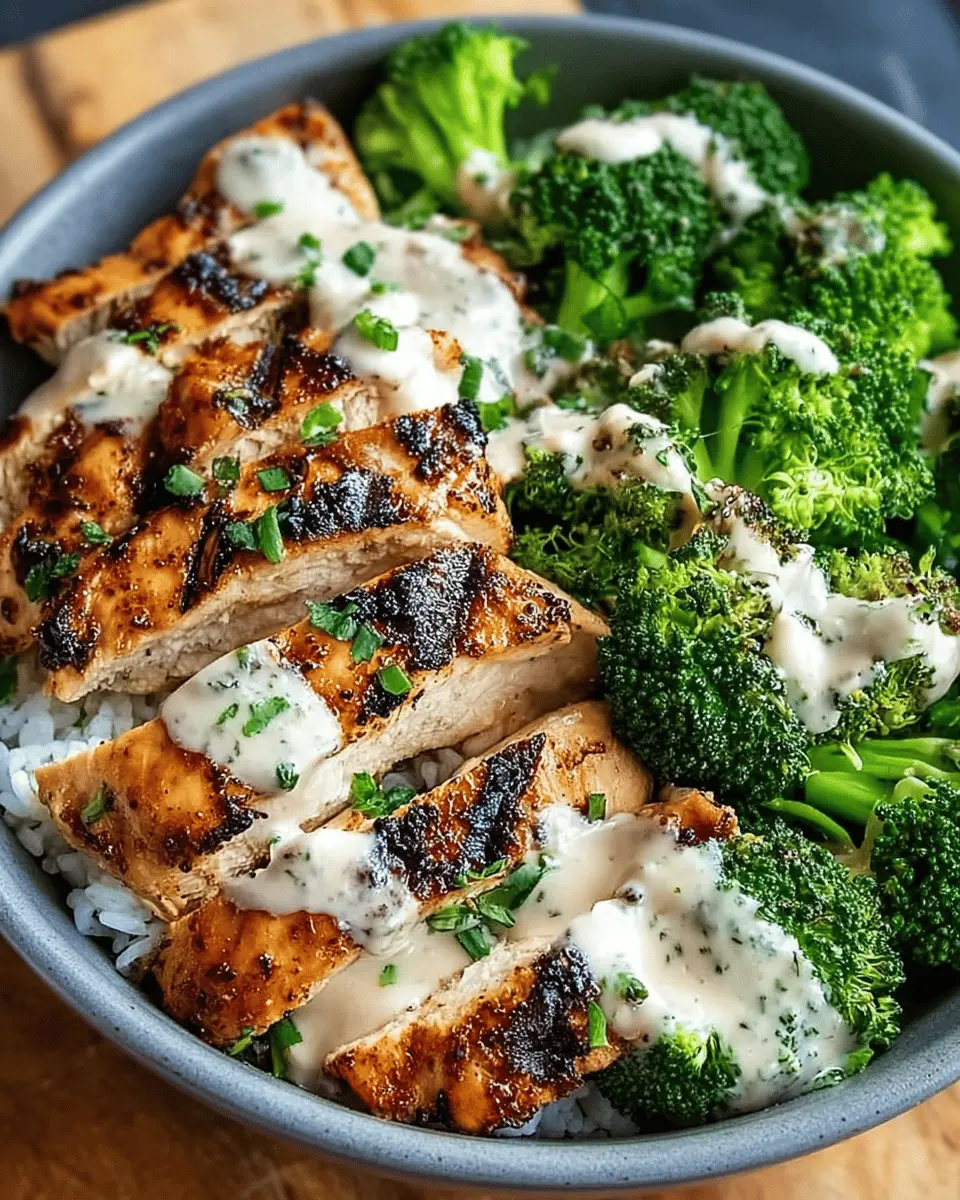 Grilled Chicken Broccoli Bowls: Easy Creamy Garlic Sauce Recipe