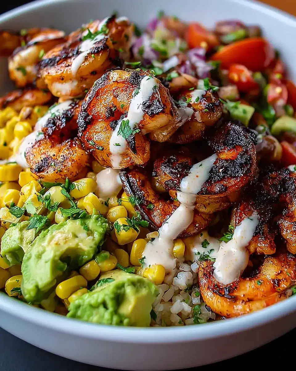 And there you have it — your flavorful grilled shrimp bowl is ready to enjoy! Don’t hesitate to personalize the ingredients or adjust the spice levels to fit your taste. Happy cooking!