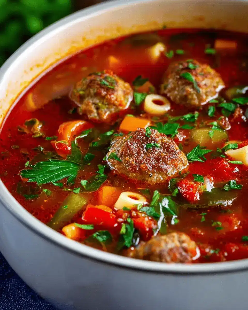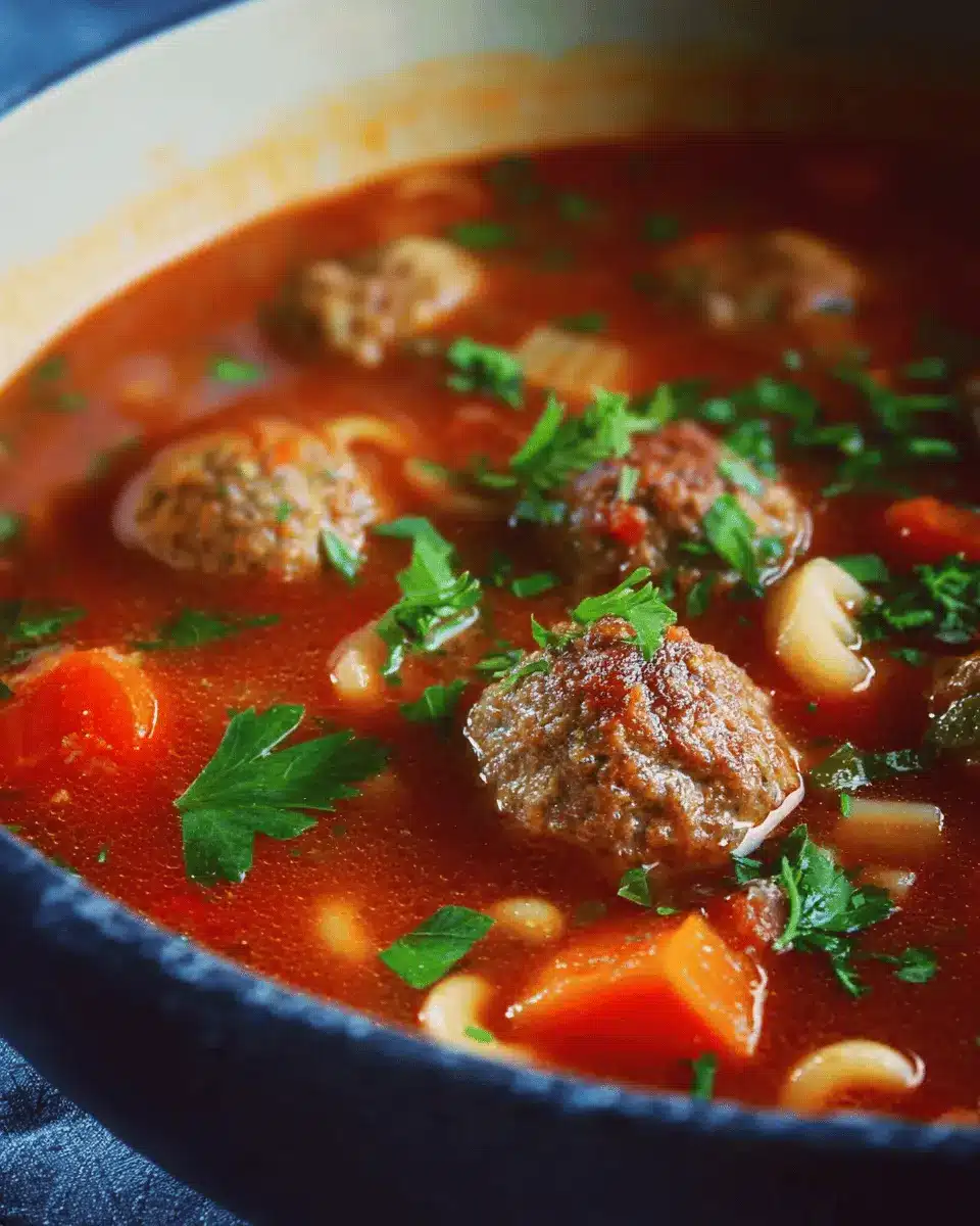 Let’s dive into the delicious ingredients that make your Italian Meatball Soup a comforting and tasty dish. This delightful recipe combines hearty meatballs with a rich and savory broth, perfect for a cozy night in or impressing your friends at dinner.