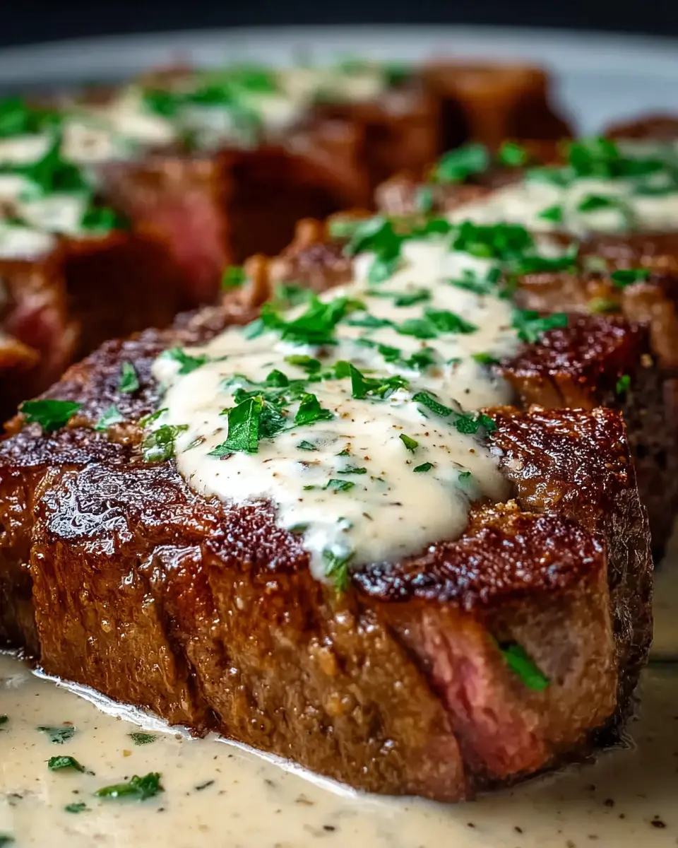 Finally, return the steaks to the skillet, spooning that heavenly garlic sauce over them. Let them sit for another couple of minutes to soak up all those incredible flavors. Once plated, don’t forget to garnish with a sprinkle of freshly chopped parsley for a pop of color and freshness. Serve your juicy steak with creamy garlic sauce hot, and consider pairing it with some creamy mashed potatoes or crisp roasted vegetables for a complete meal experience.