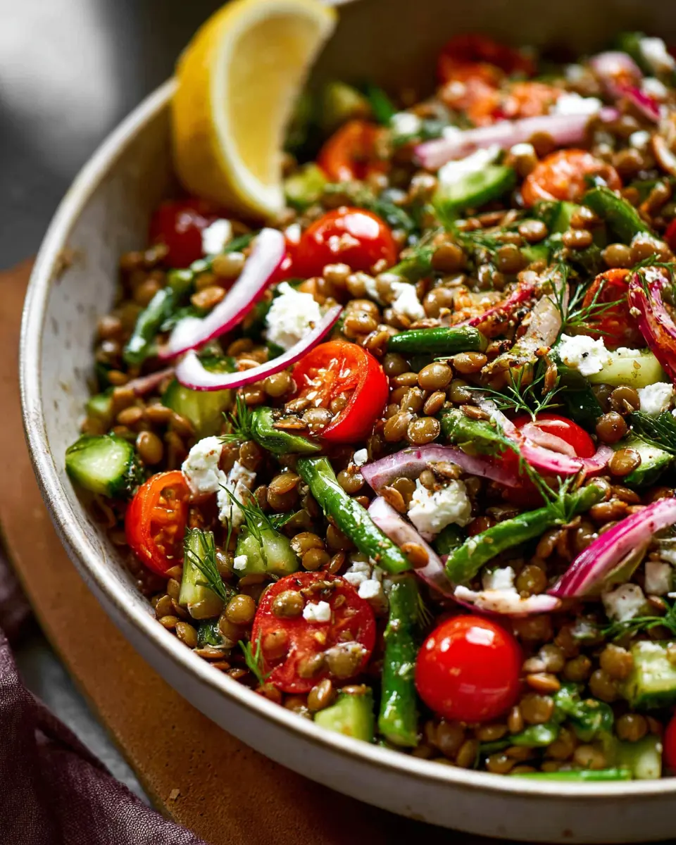This salad is your best friend if you’re looking to eat healthier without sacrificing taste. With fiber-rich lentils and fresh vegetables like red bell peppers and green beans, it promotes satiety and energy—essential for powering through those long workdays. Plus, the Lemon-Dijon dressing adds a zesty kick that makes each bite an experience.