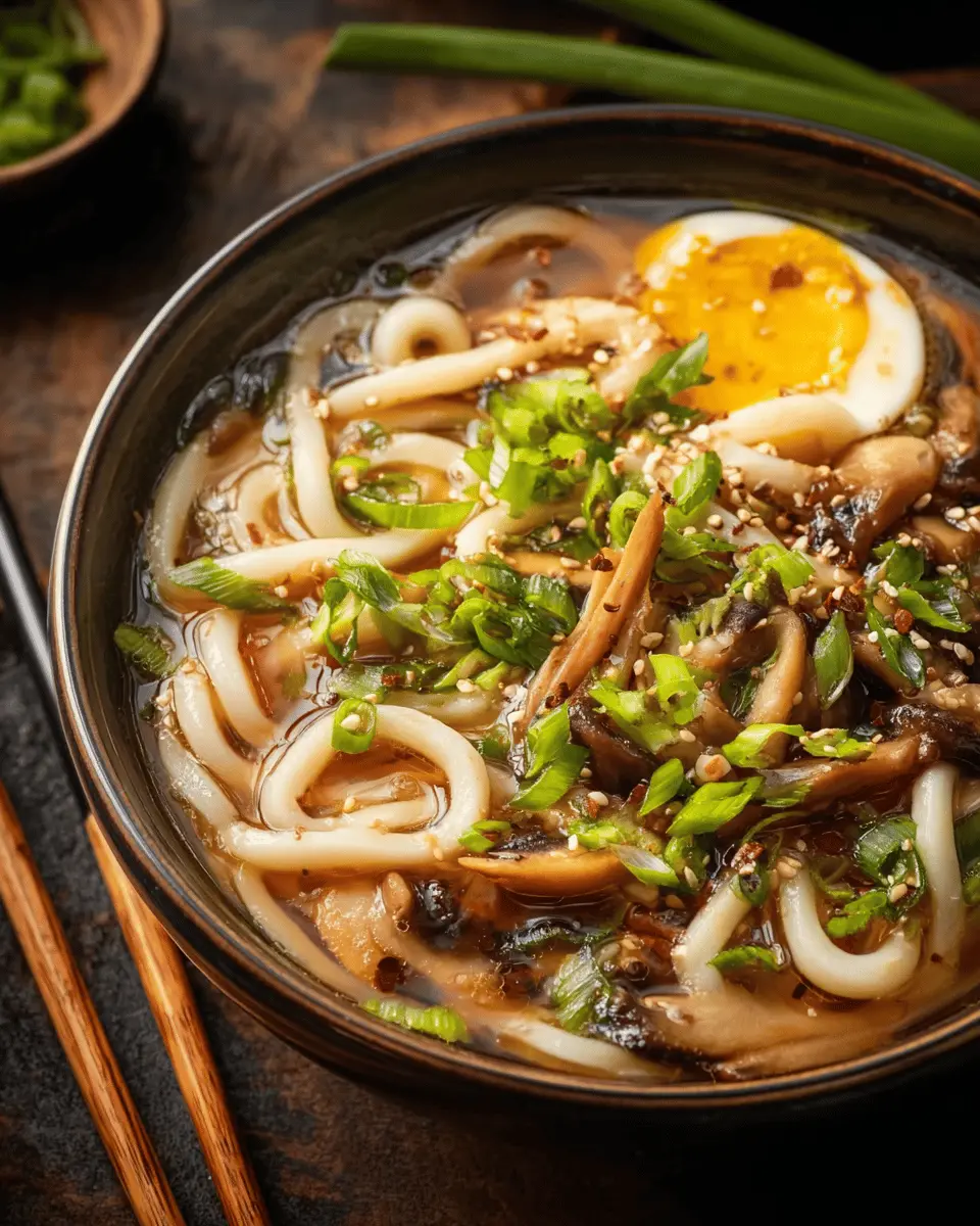 Miso Udon Noodle Soup with Teriyaki Mushrooms: A Cozy Delight