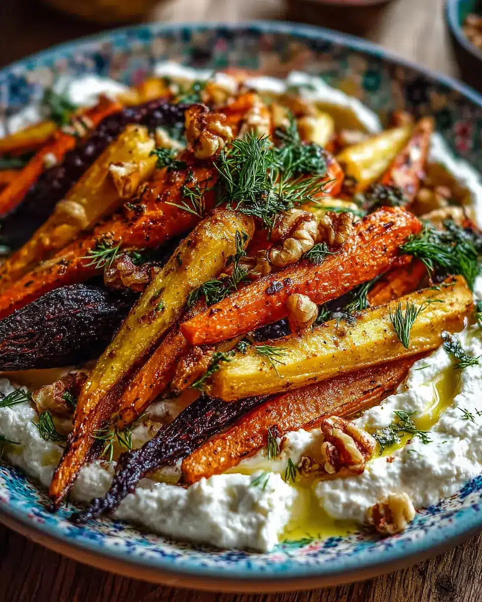 Once the veggies are perfectly roasted, it’s time to bring everything together. Start by spreading the whipped feta on a serving platter. Pile the roasted carrot parsnip mix on top and drizzle generously with your hot honey. For extra crunch, sprinkle with toasted walnuts and garnish with fresh herbs for a pop of color.
