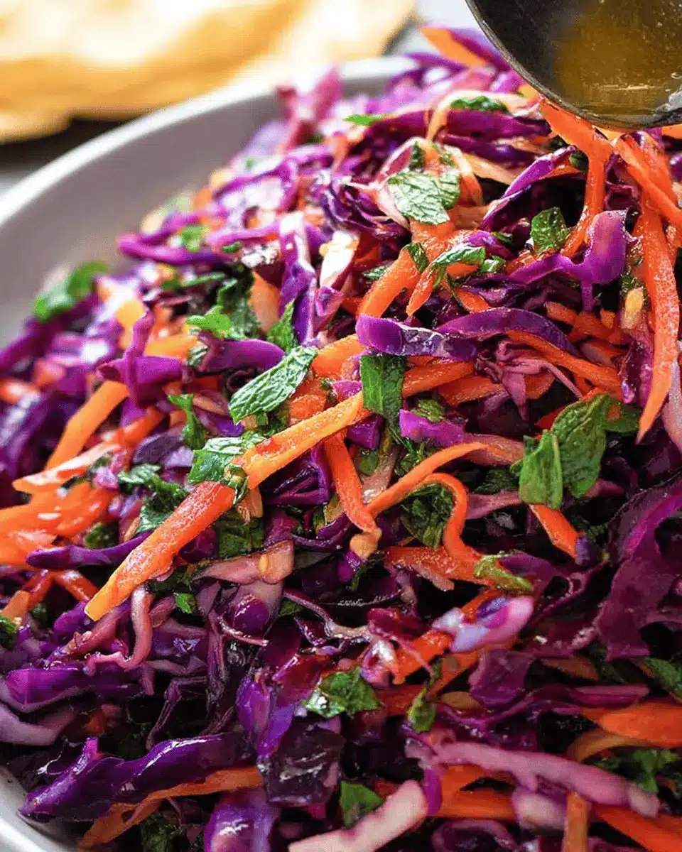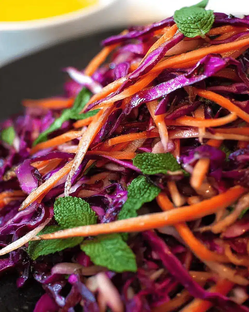 This vibrant Shredded Red Cabbage, Carrot, and Mint Salad is not just easy to prepare; it’s a delight for your taste buds and a feast for the eyes. With its fresh ingredients and zesty dressing, it’s a perfect side dish for any meal, adding color and crunch!