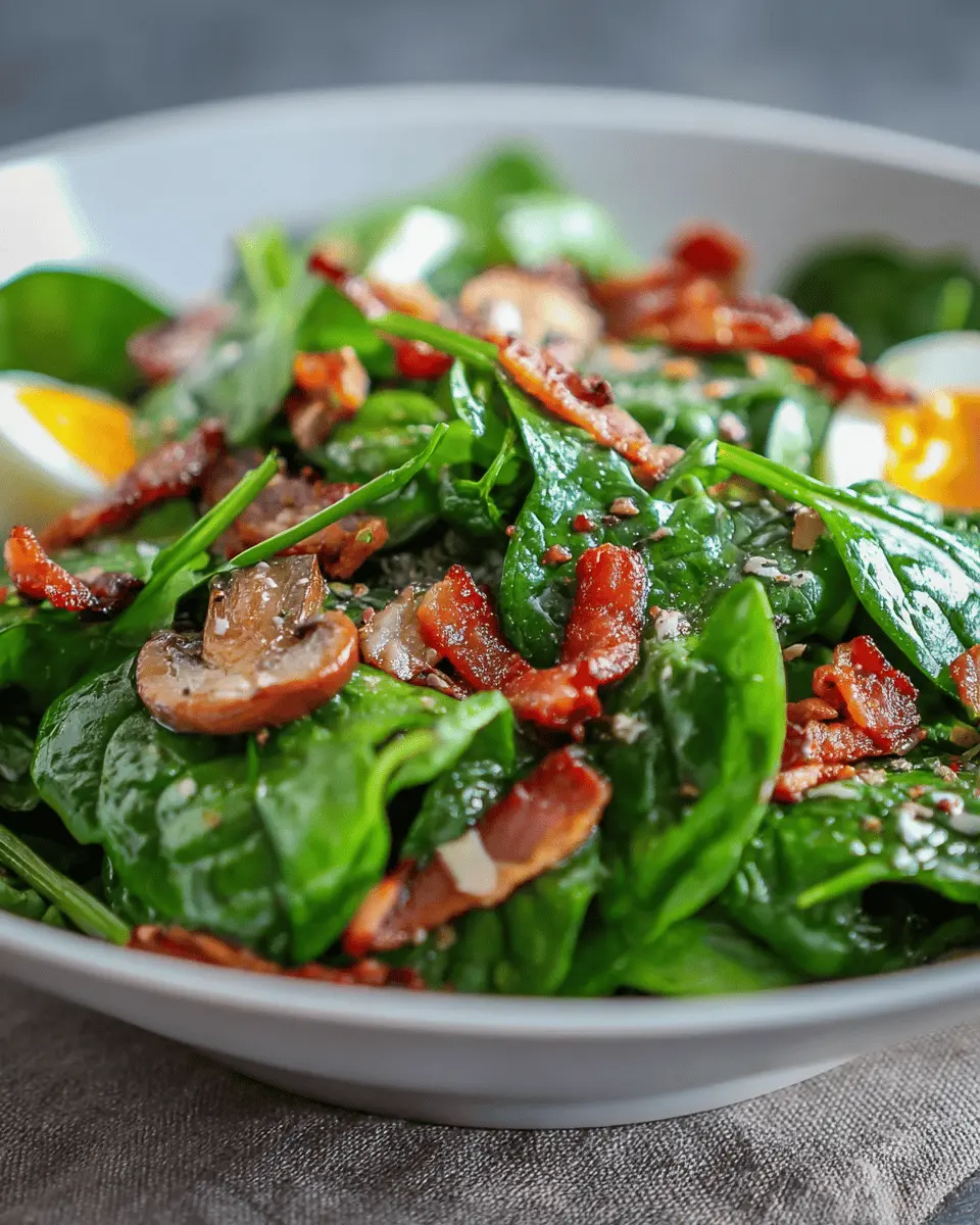For the best experience, serve your spinach salad with warm bacon dressing immediately. Eating it fresh ensures that the flavors meld beautifully, and the warm dressing brings out the best in each ingredient. Plus, there’s something special about enjoying a salad while the components are still cozy!