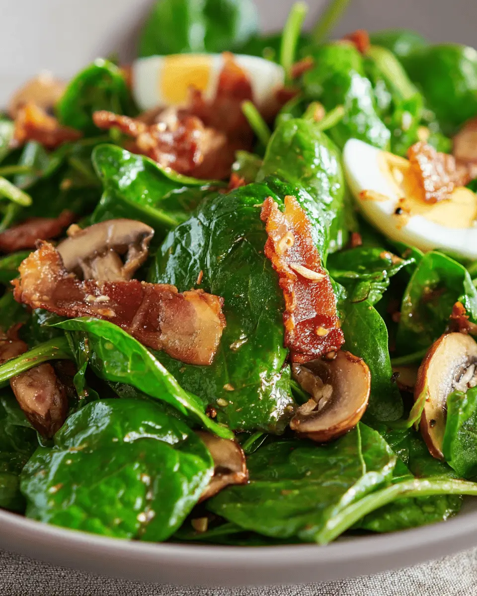 Spinach Salad with Warm Turkey Bacon Dressing: A Fresh Delight