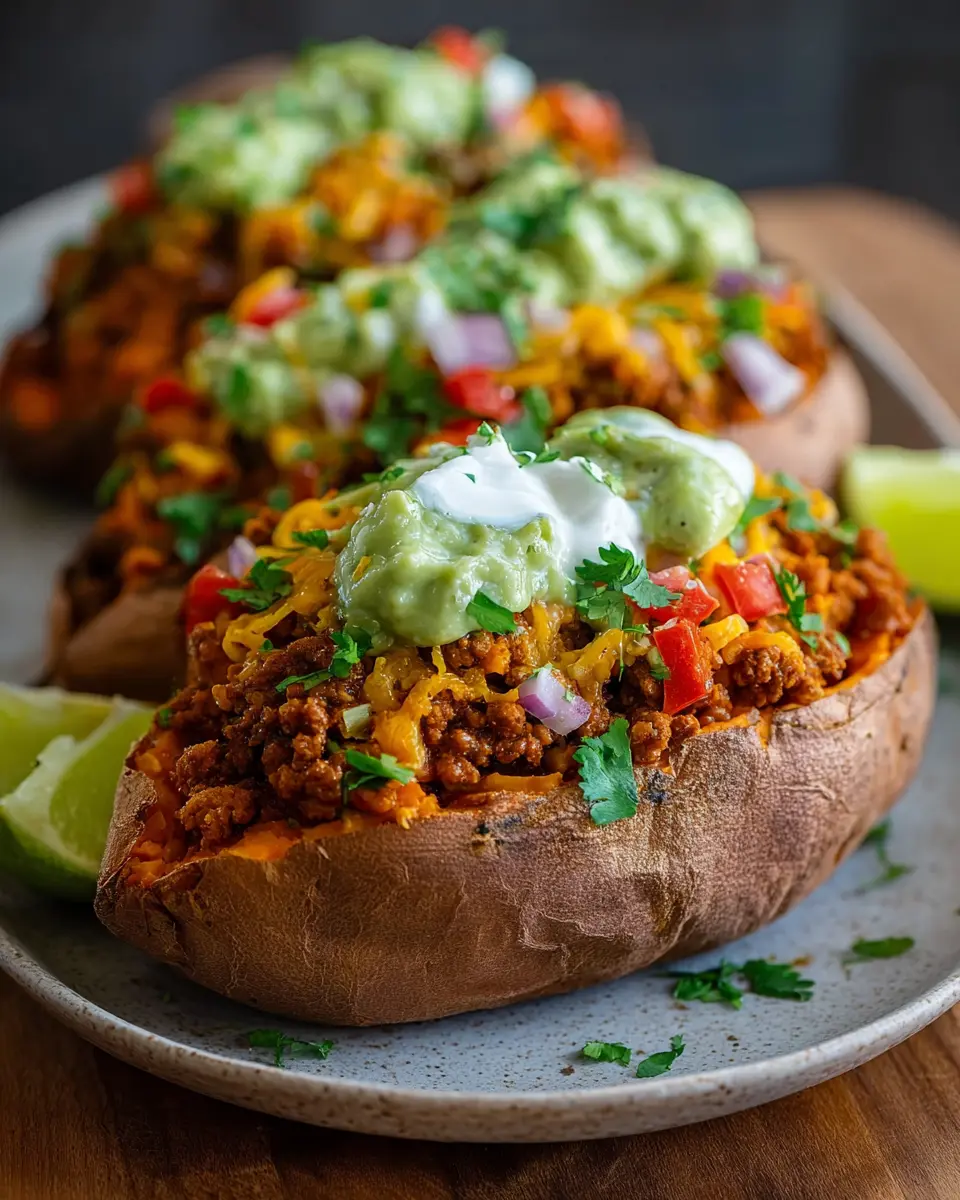 If you’re a heat seeker, consider adding diced jalapeños to your filling for an extra kick. These spicy taco stuffed sweet potatoes will ignite your taste buds! You can also top them with a spicy avocado crema—just blend in some jalapeño with your traditional avocado sauce for that perfect zing. For an additional layer of flavor, use a hot salsa or sprinkle some crushed red pepper flakes over the top. Not only will these spicy variations keep things lively at the dinner table, but they can also leave you dreaming about your next culinary adventure!
