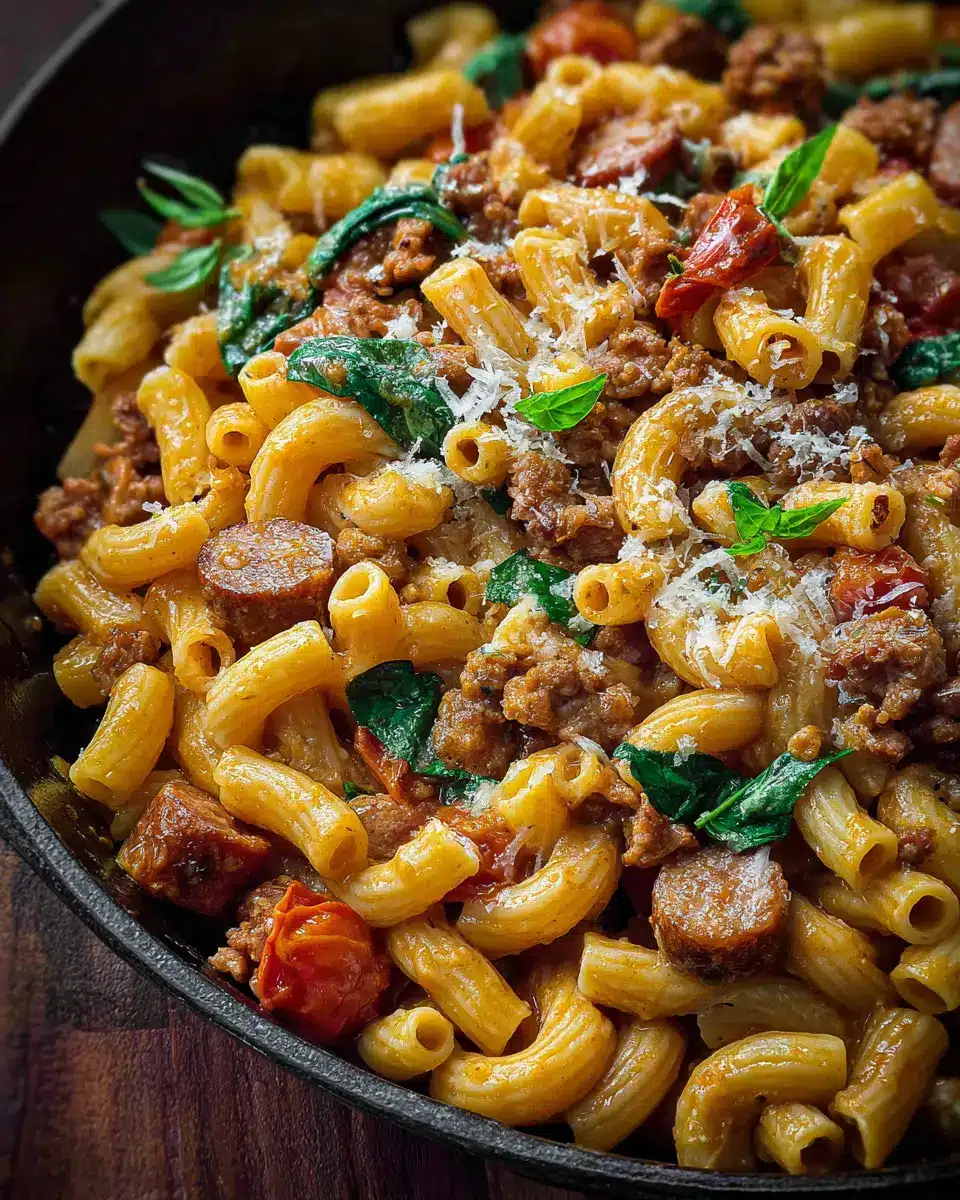 To create a satisfying meal with your Tuscan Sausage Pasta, consider pairing it with a simple arugula salad tossed in lemon vinaigrette. The peppery greens provide a refreshing contrast to the creamy pasta. For a delightful crunch, serve warm, crusty ciabatta or garlic bread on the side, perfect for soaking up every last drop of the savory sauce. You could even try a side of roasted vegetables for added nutrition and flavor—they complement the dish beautifully.