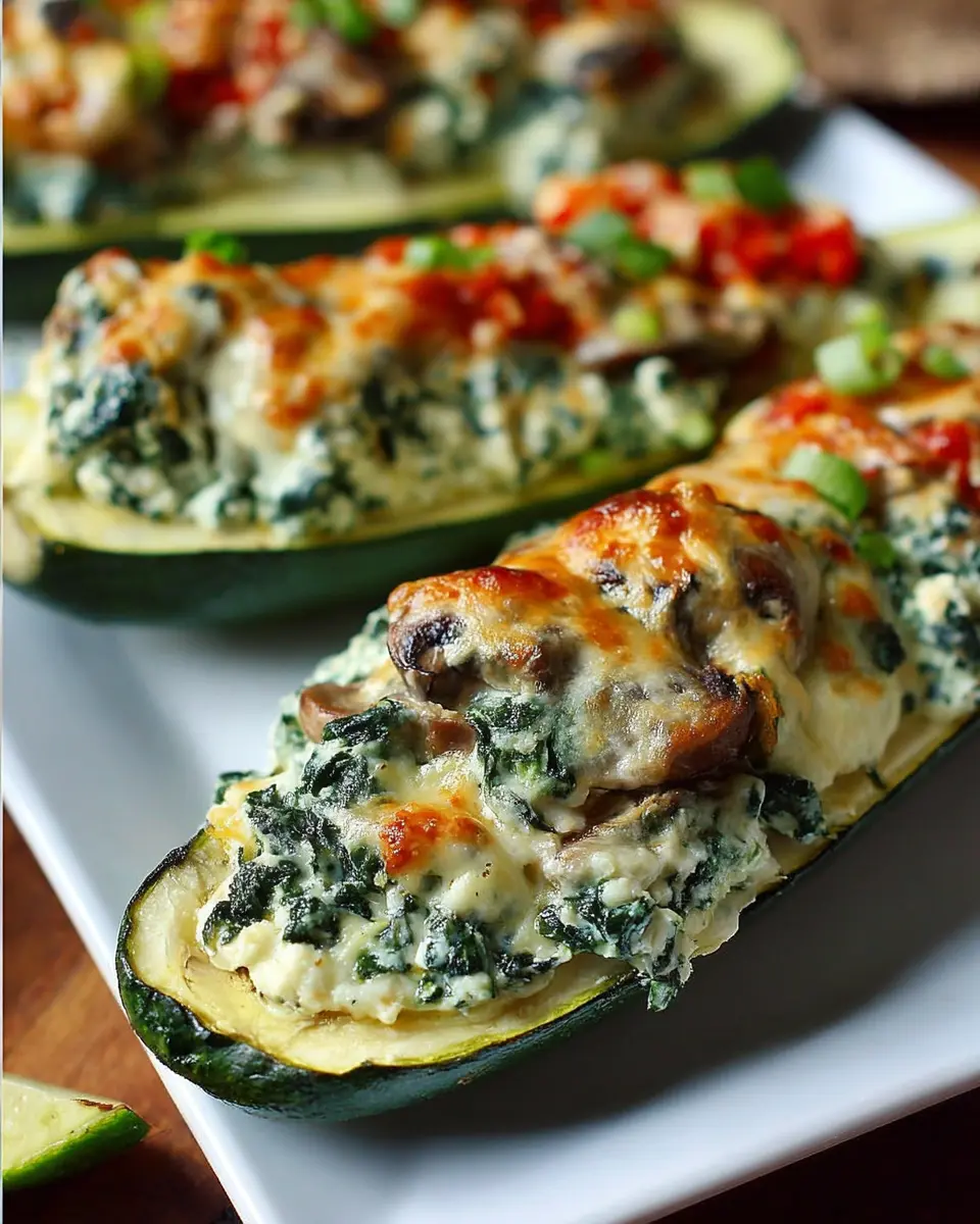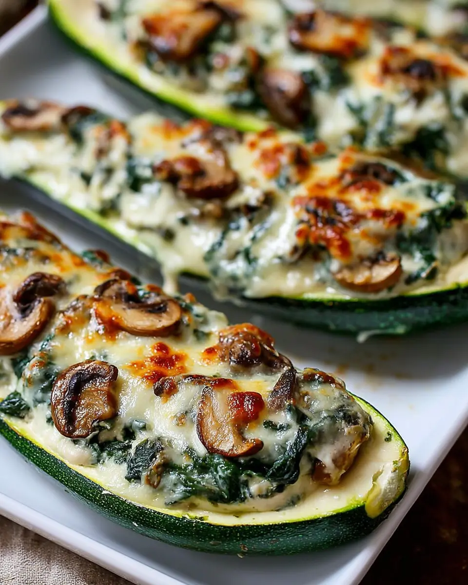 In conclusion, zucchini boats stuffed with spinach, mushrooms, and ricotta are not just a delicious meal; they are also a fantastic way to introduce more veggies into your diet. Whether you're feeding a family or looking for a simple solo dinner, these boats are both satisfying and nutritious. Don’t hesitate to try this recipe; your taste buds (and your health) will thank you! Check out more delicious veggie ideas here and elevate your meal game!